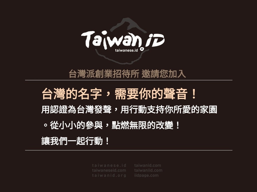 我們的「台灣派創業招待所」fb粉絲專頁已加入「taiwanese.id台灣人網頁認證」!