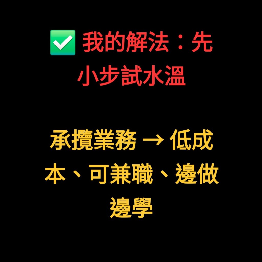 在最初的階段,我不是孤注一擲,而是先選擇「低成本、可彈性投入的承攬業務」,用兼職的方式試水溫。